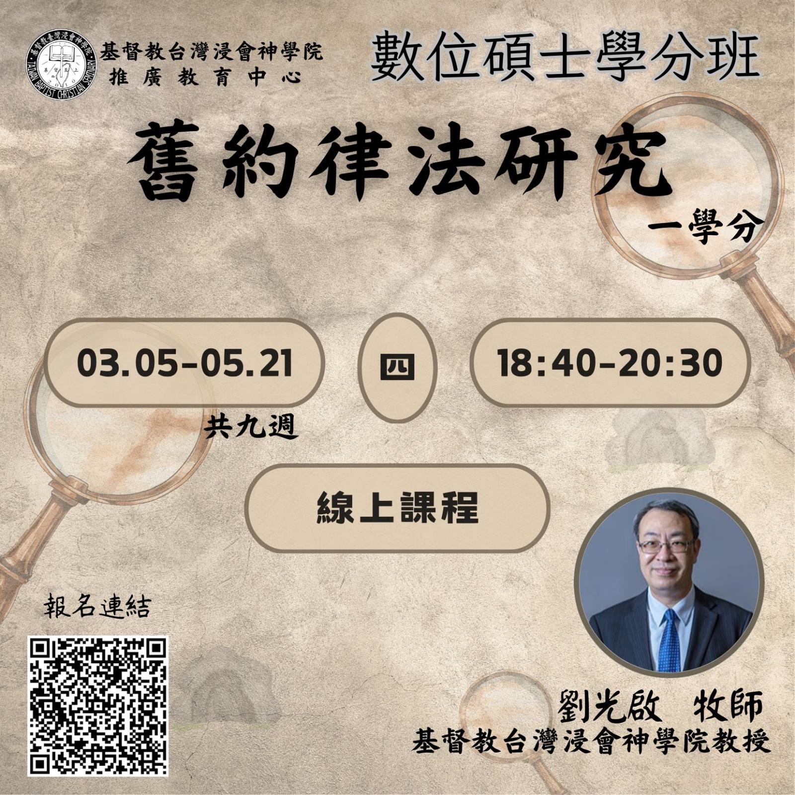 3.歡迎報名 ~114(下)數位碩士學分班【舊約律法研究】,即日起開始報名,敬請把握!New!!線上報名