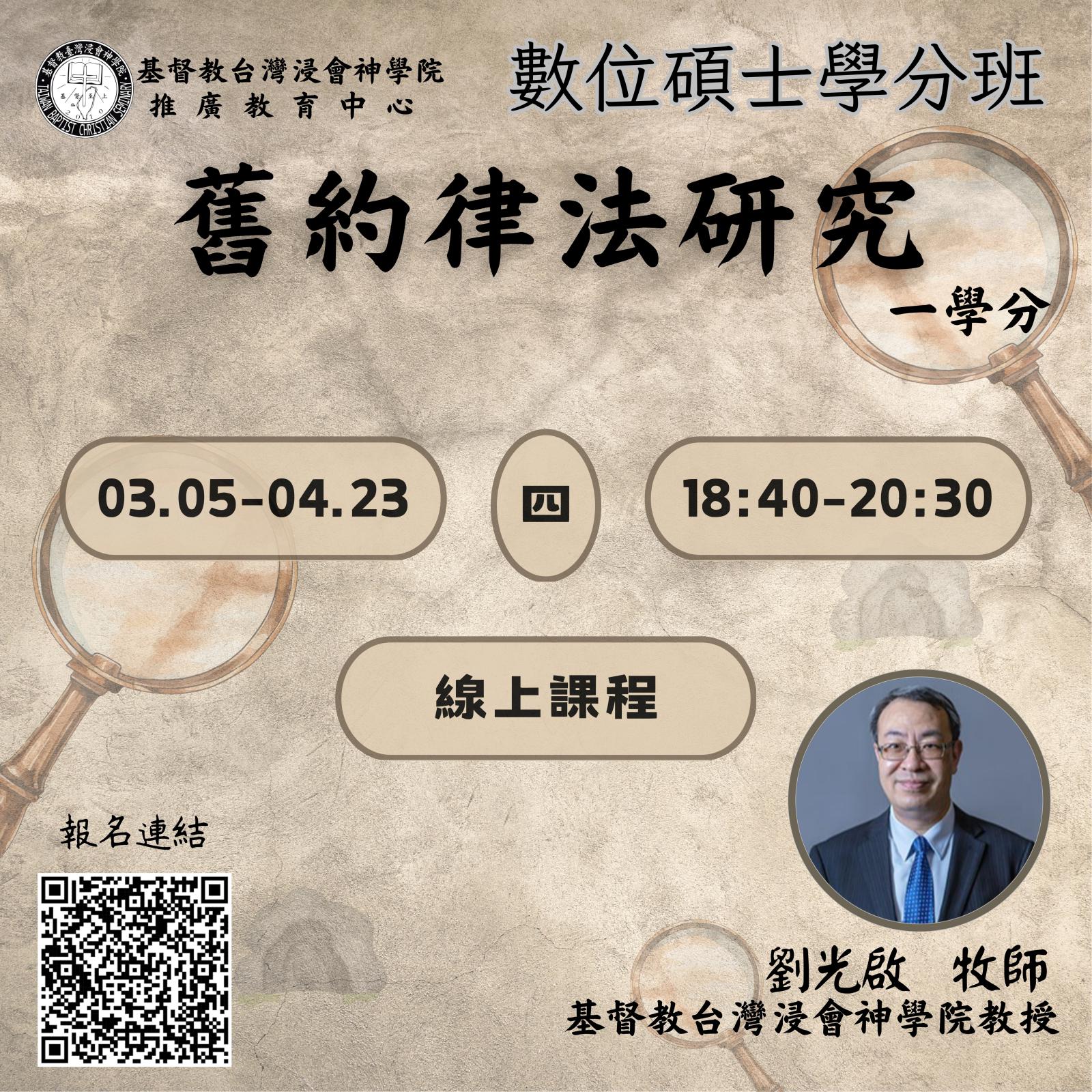 3.歡迎報名 ~114(下)數位碩士學分班【舊約律法研究】,即日起開始報名,敬請把握!New!!線上報名
